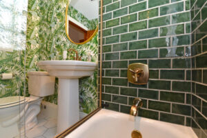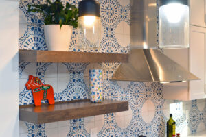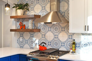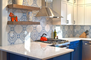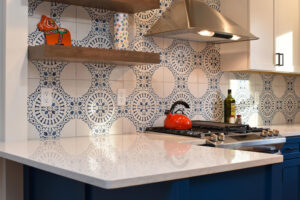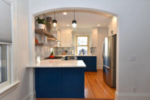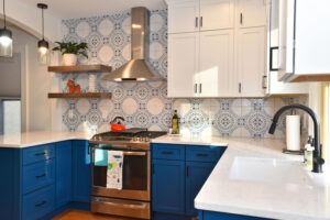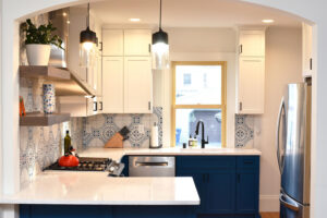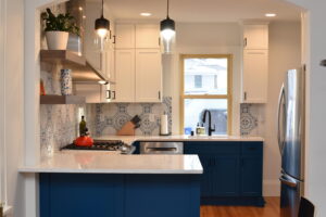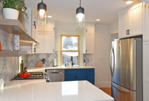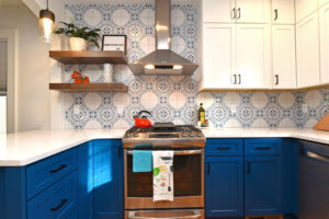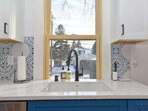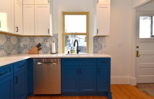 We used some bright, bold colors in the kitchen and bathroom in this St. Paul renovation. Click imge to view full screen.