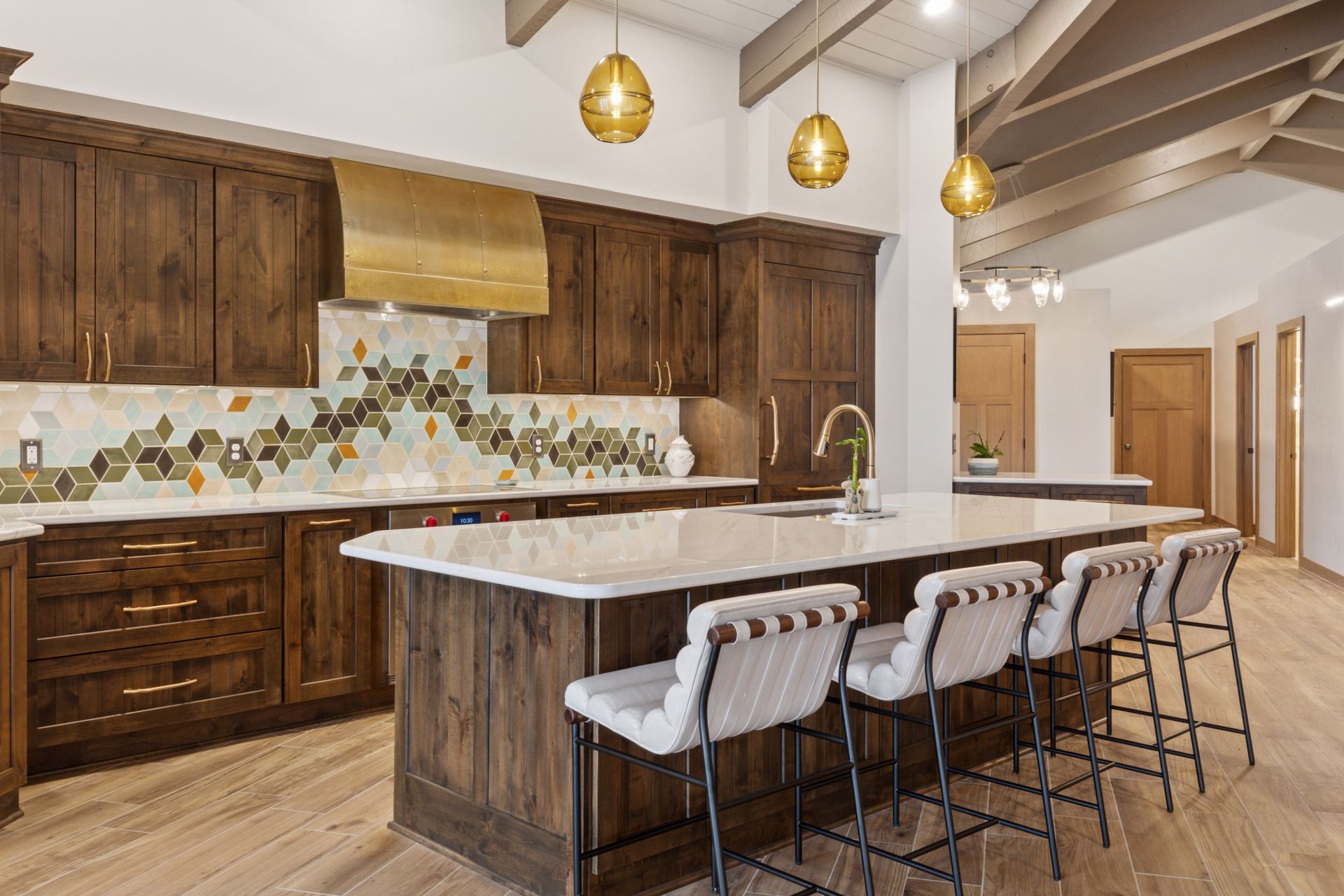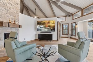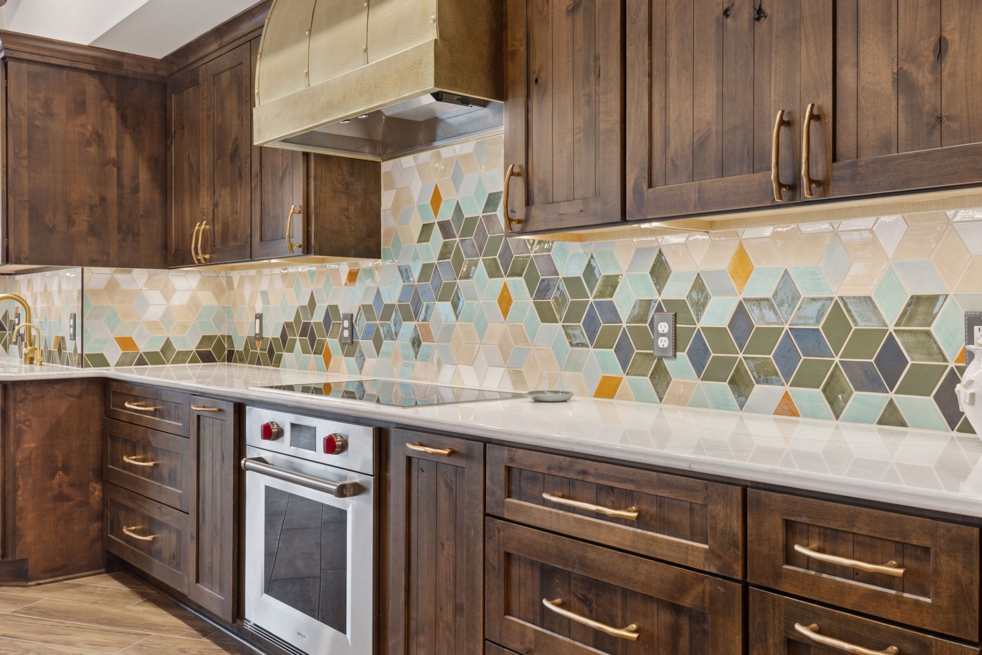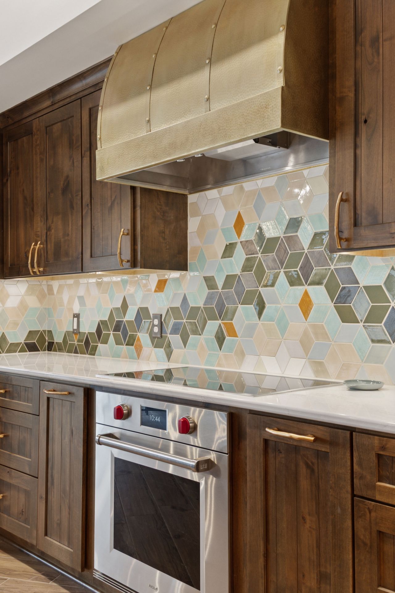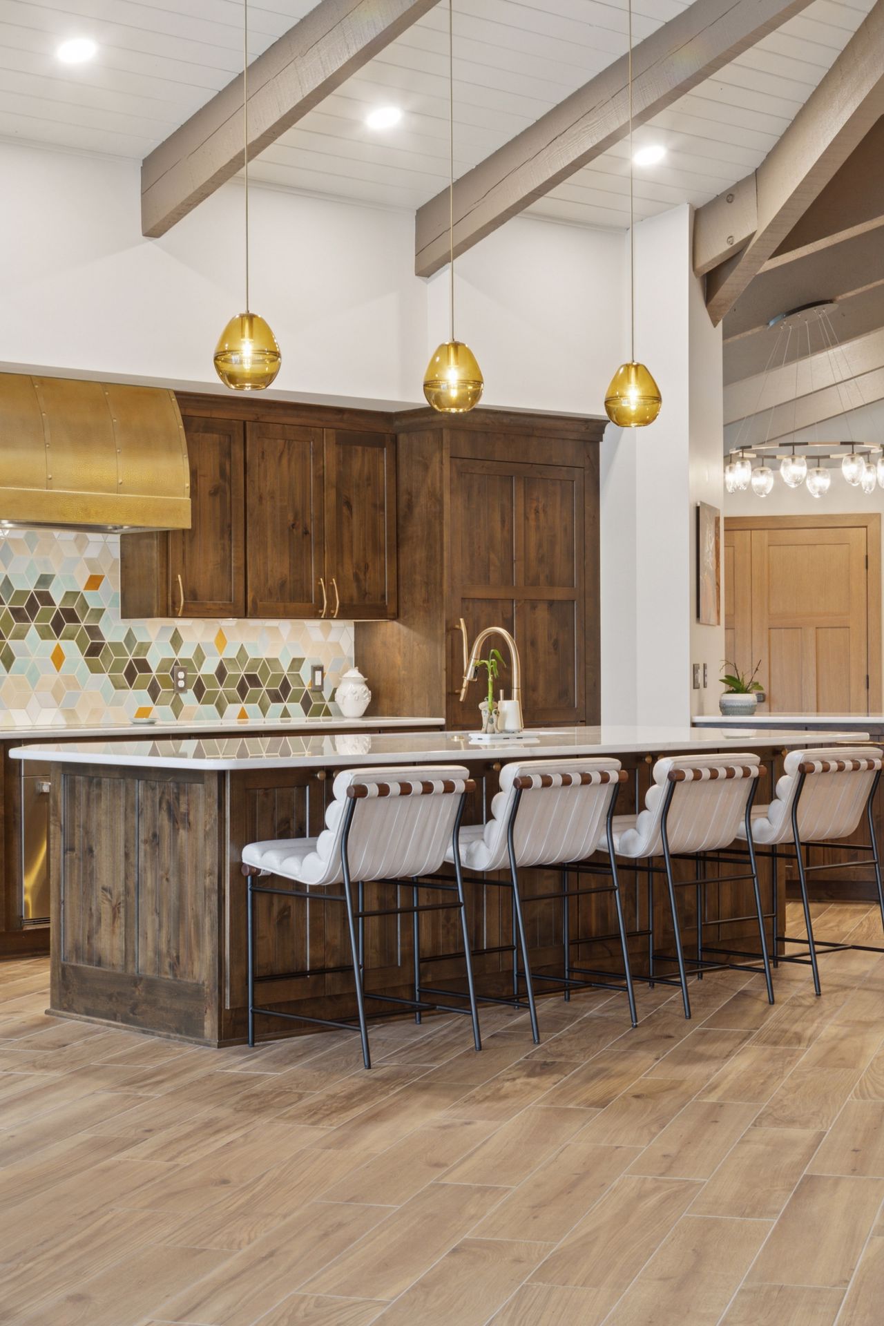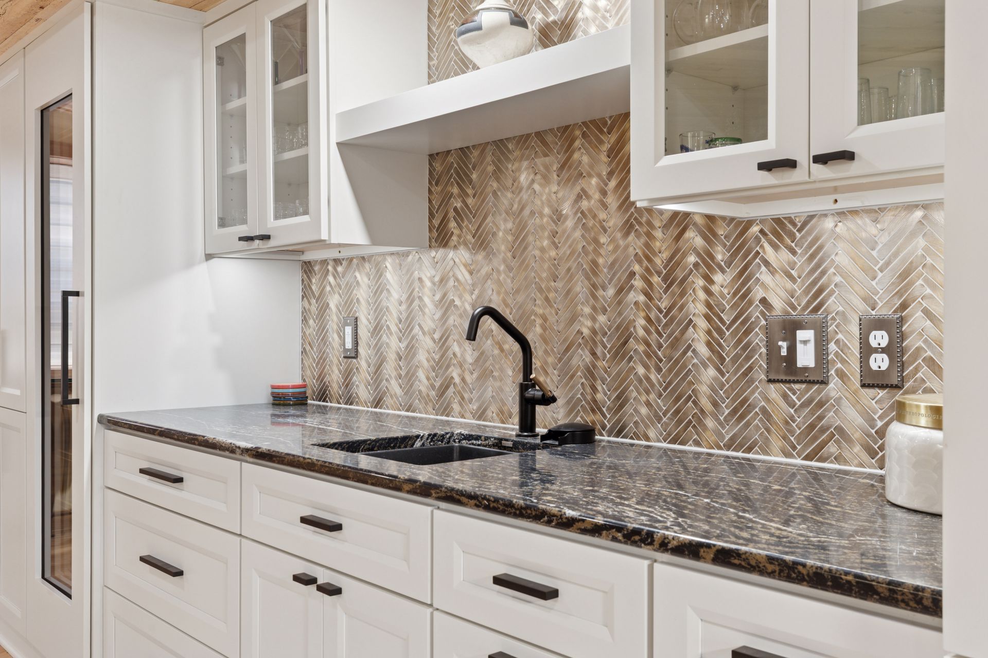 This hexagon house got a new lease on life. We literally took it down to the studs, and we connected the garage to the house by taking out the breezeway. The kitchen was moved to make it more spacious and suitable for cooking and hosting gatherings. The homeowner sought out unique and one of a kind finishes. The front door was specially made and shipped in. The tile backsplash was designed just for them and this space. We had so much fun with this project and bringing new life into this home.