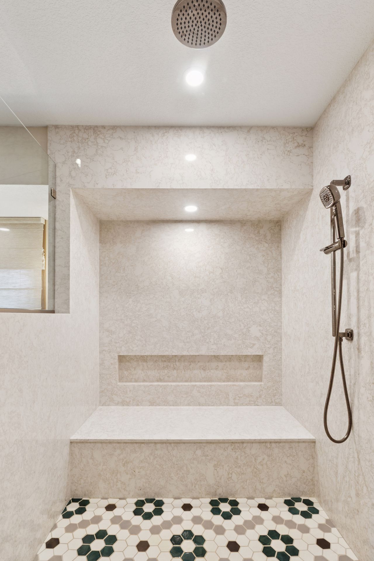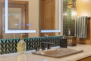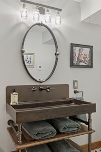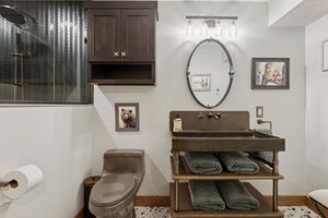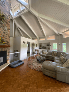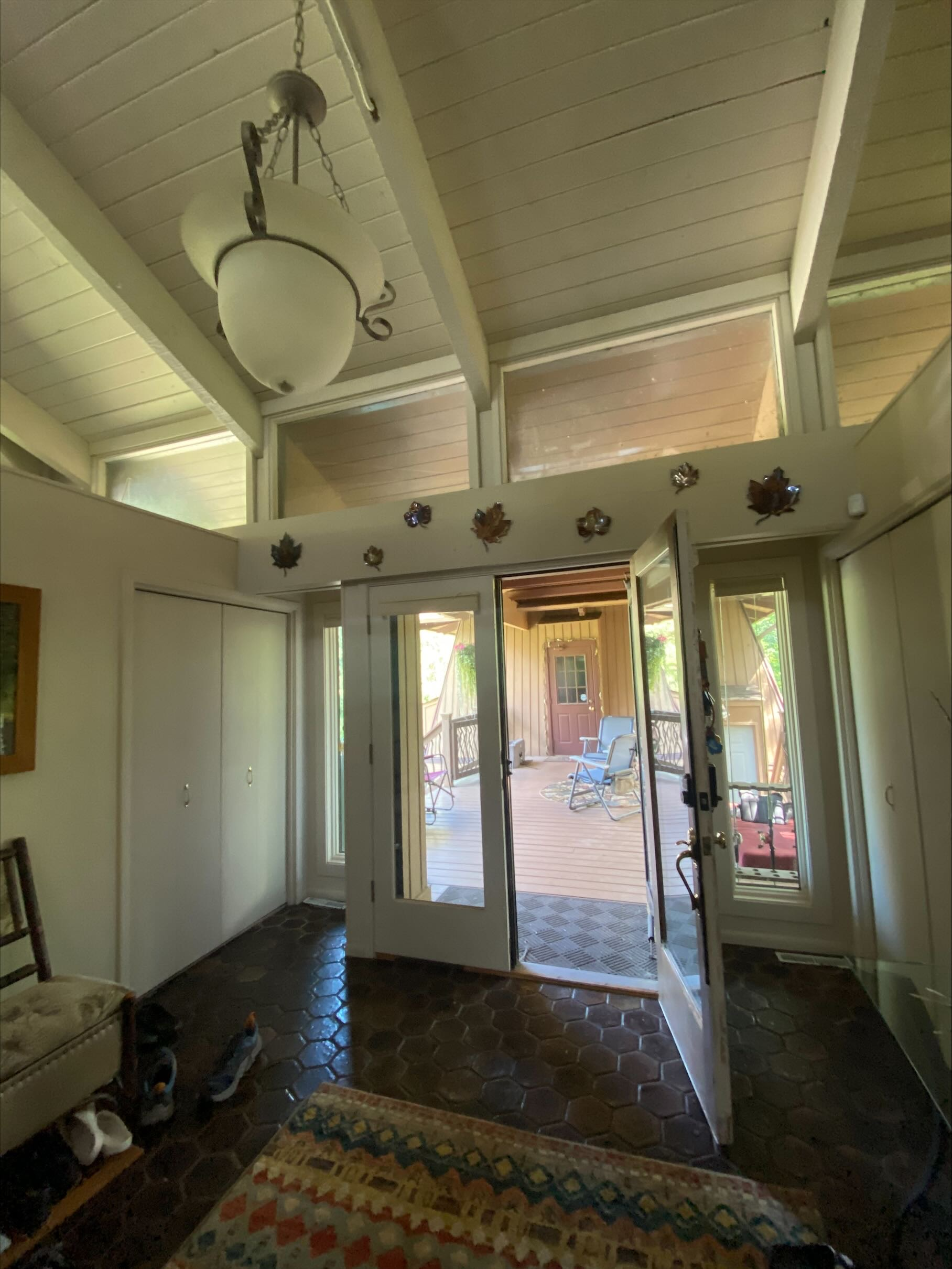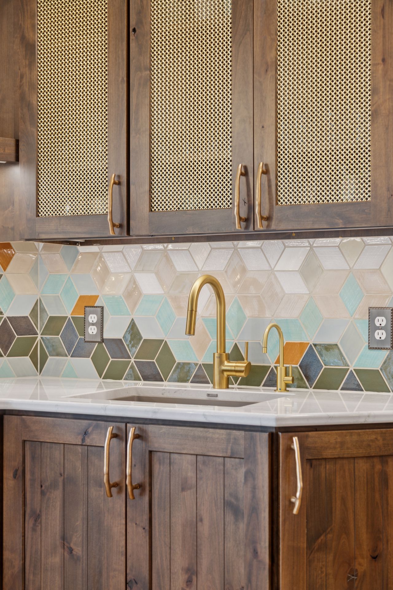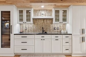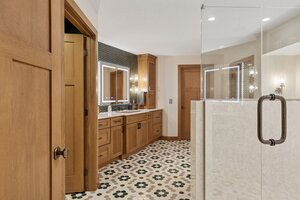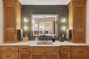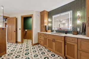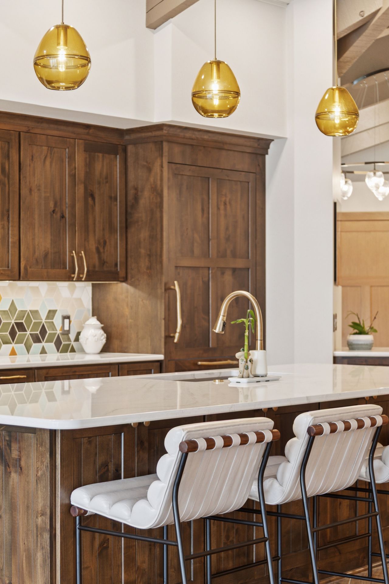 This hexagon house got a new lease on life. We literally took it down to the studs, and we connected the garage to the house by taking out the breezeway. The kitchen was moved to make it more spacious and suitable for cooking and hosting gatherings. The homeowner sought out unique and one of a kind finishes. The front door was specially made and shipped in. The tile backsplash was designed just for them and this space. We had so much fun with this project and bringing new life into this home.