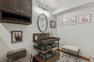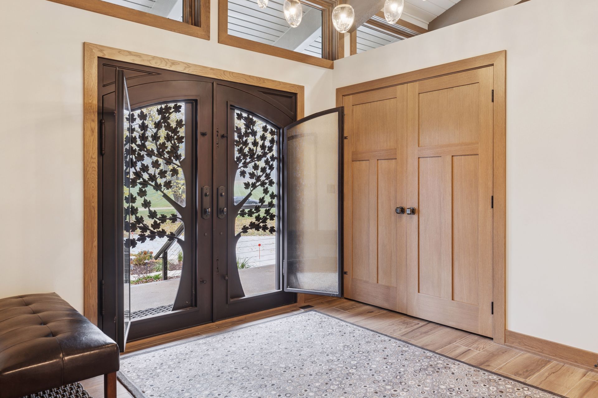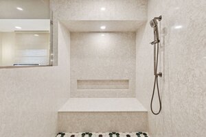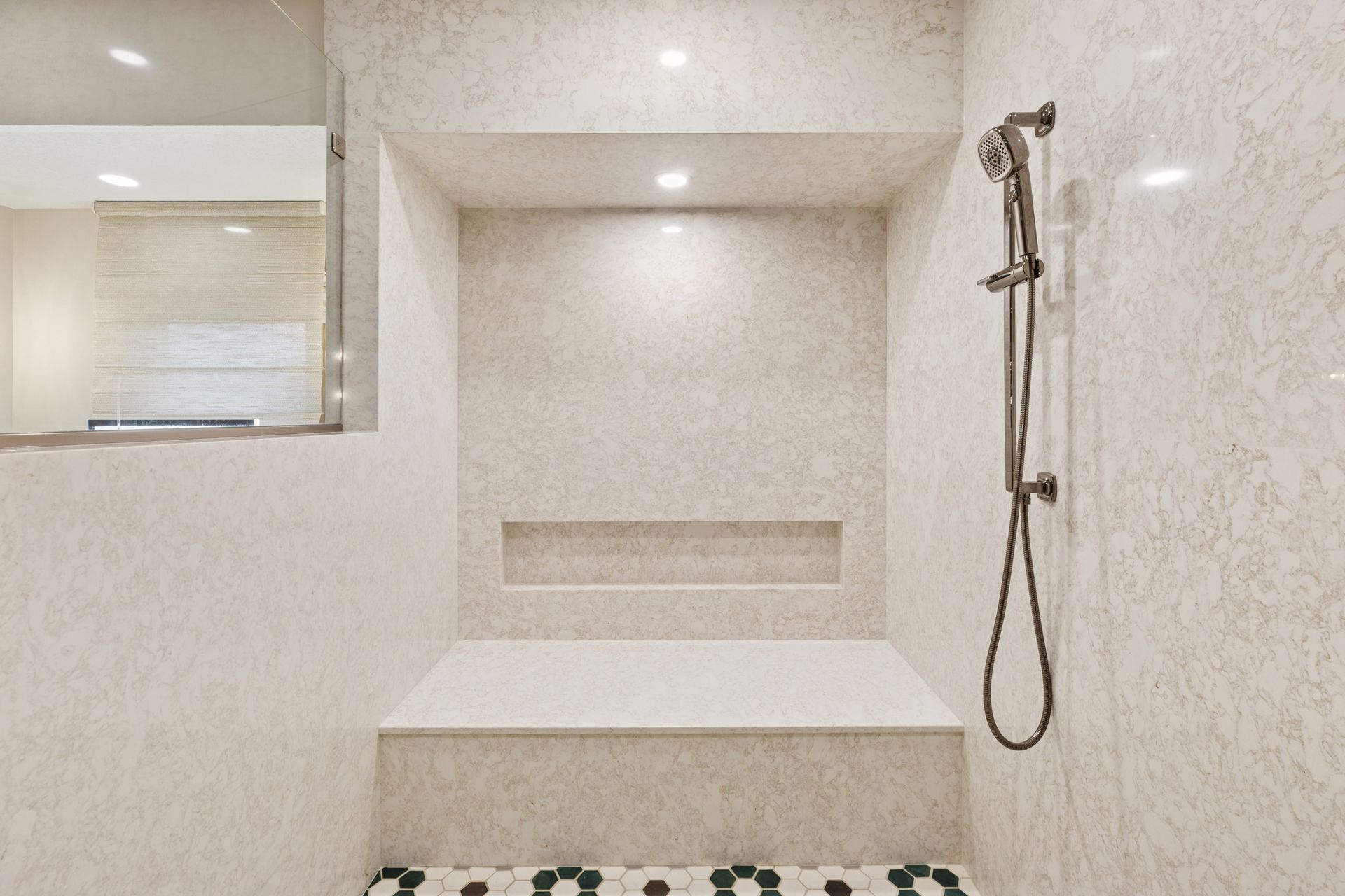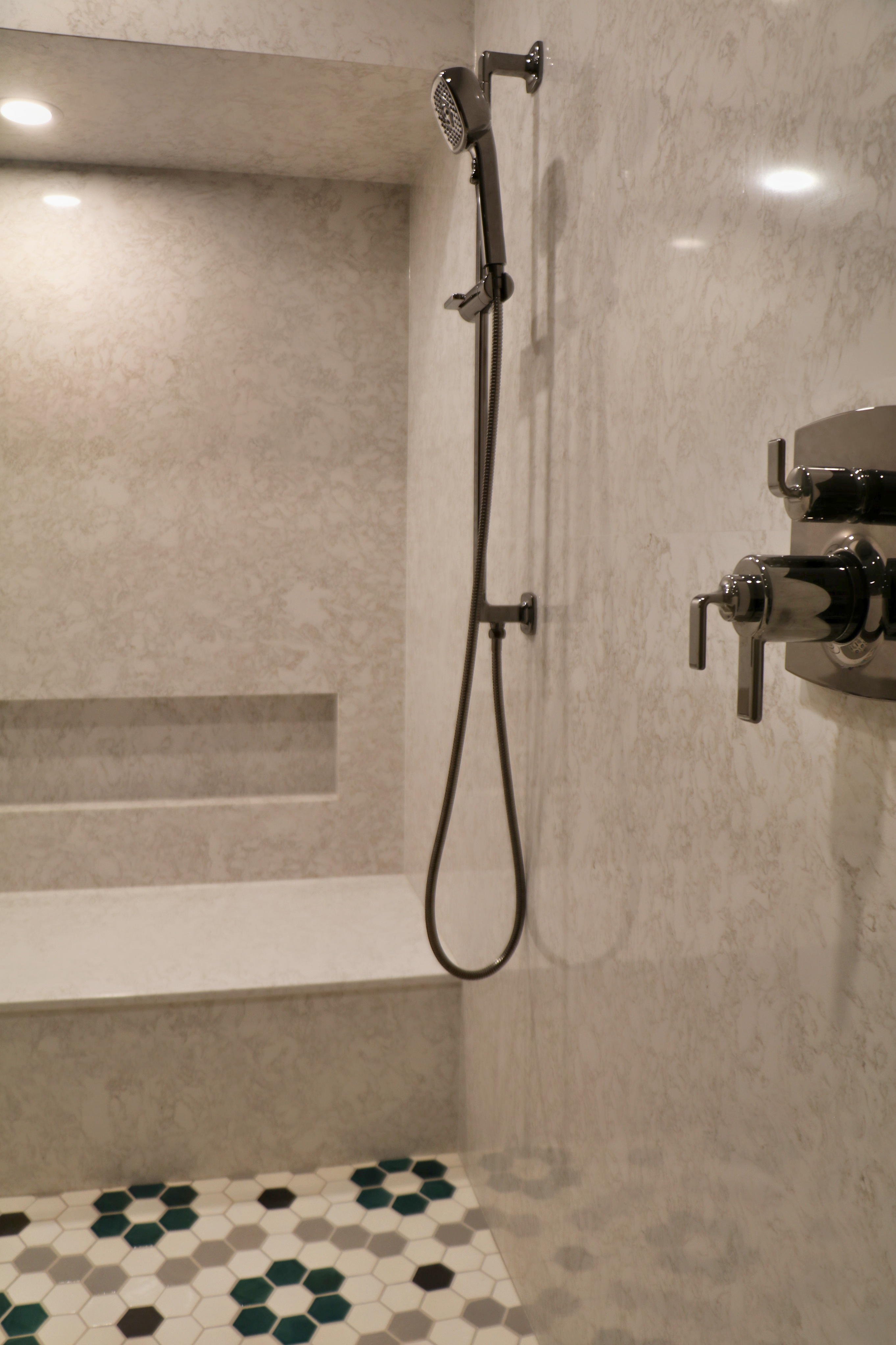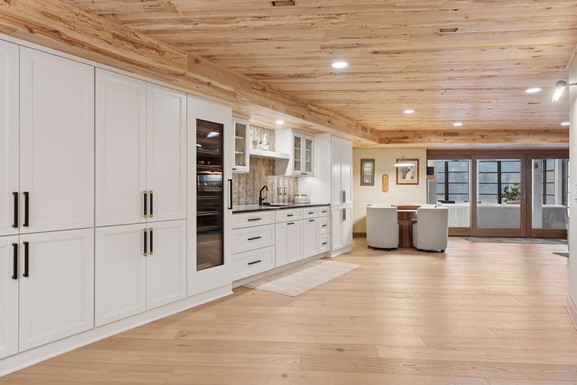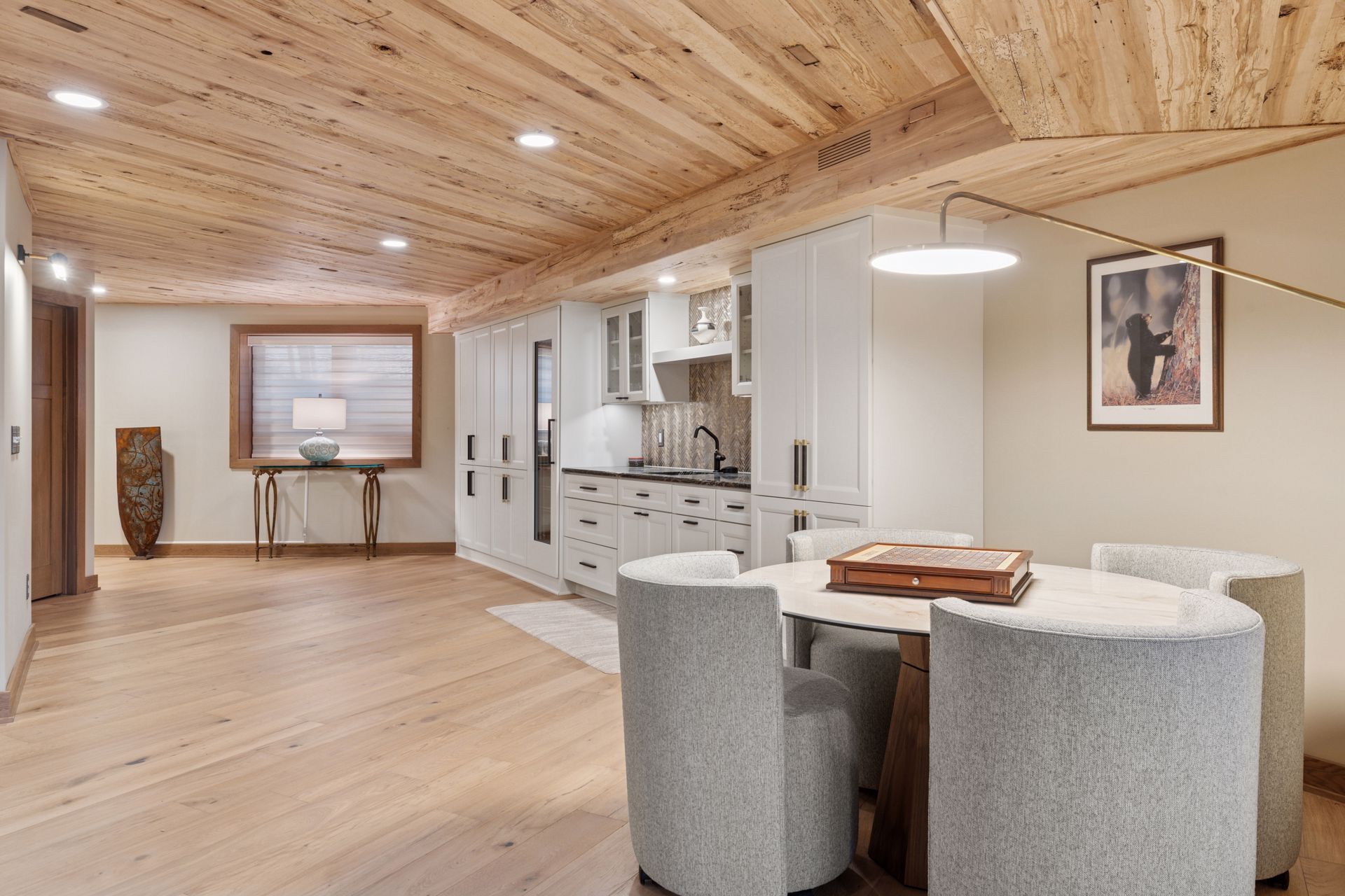 This hexagon house got a new lease on life. We literally took it down to the studs, and we connected the garage to the house by taking out the breezeway. The kitchen was moved to make it more spacious and suitable for cooking and hosting gatherings. The homeowner sought out unique and one of a kind finishes. The front door was specially made and shipped in. The tile backsplash was designed just for them and this space. We had so much fun with this project and bringing new life into this home.